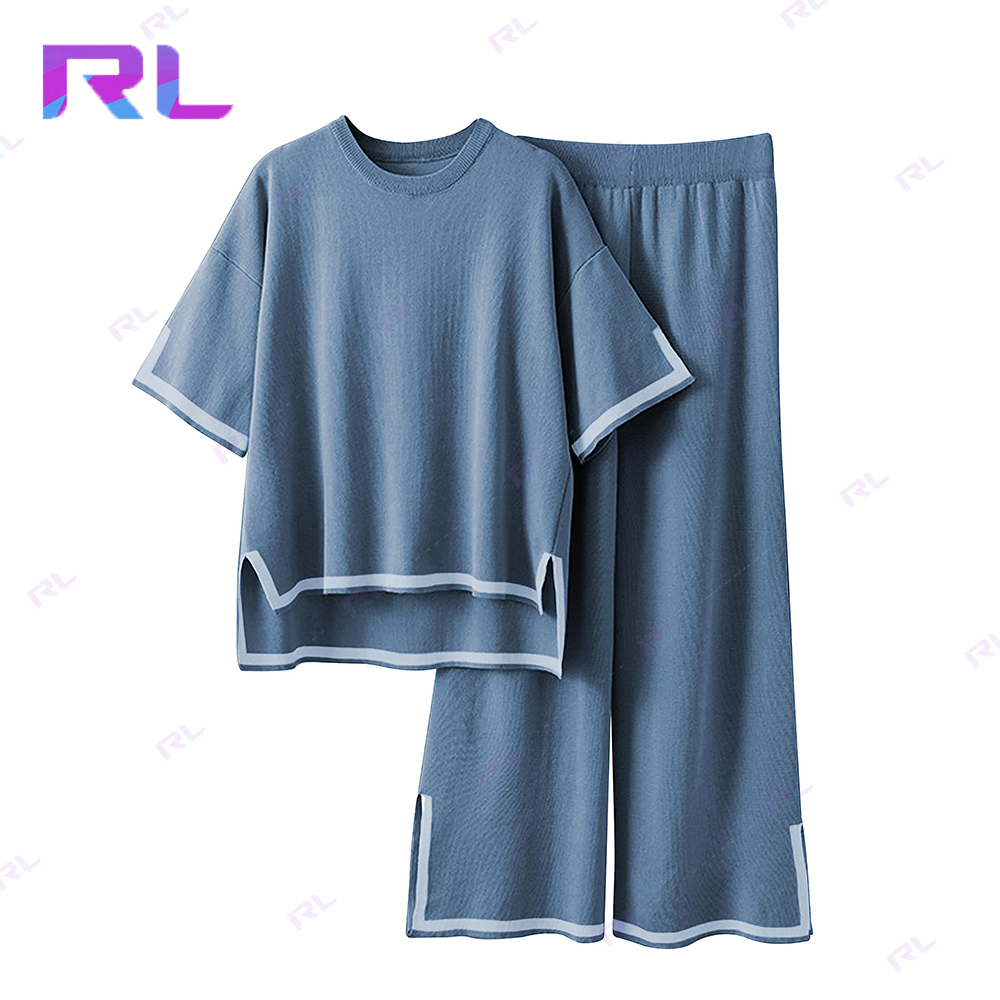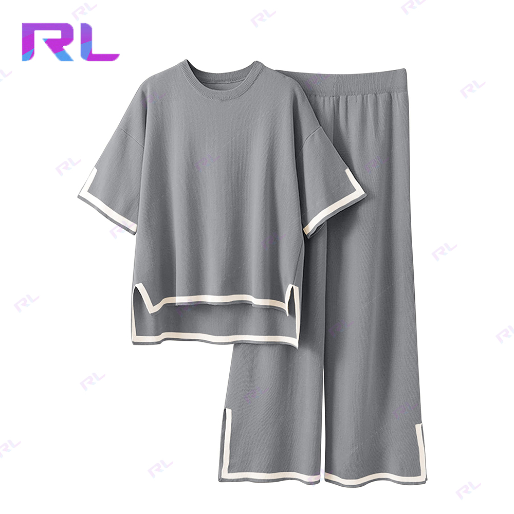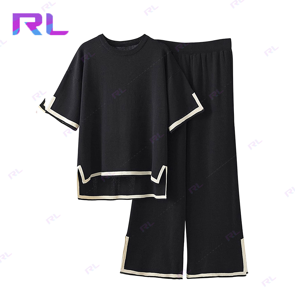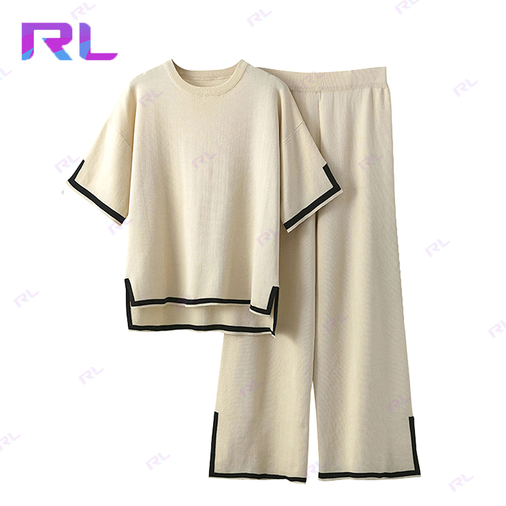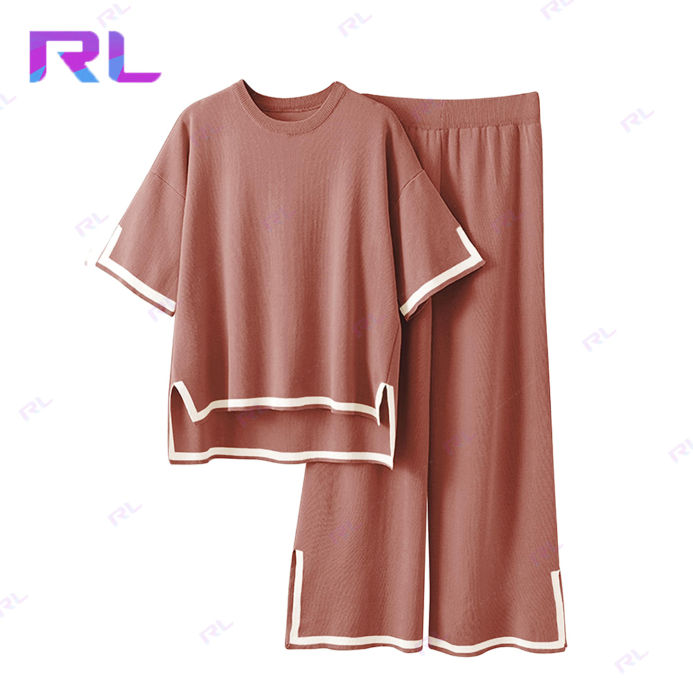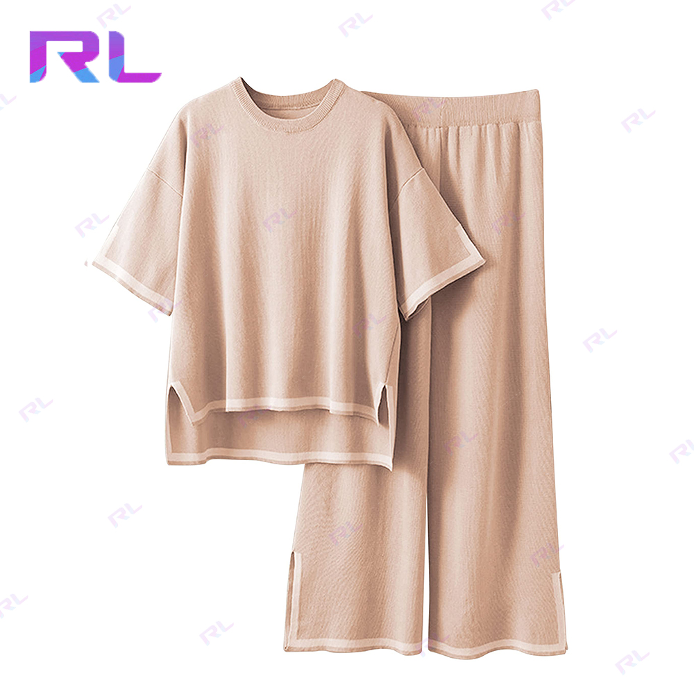 Sweater Sets Women 2 Piece Lounge Sets Short Sleeve Knit Pullover Tops Wide Leg Pants